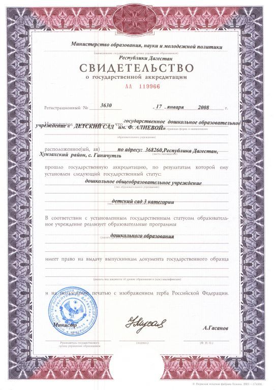 | Полное наименование образовательной организации* | Муниципальное казенное дошкольное образовательное учреждение "Детский сад" "им. Фазу Алмевой" с.Гиничутль |